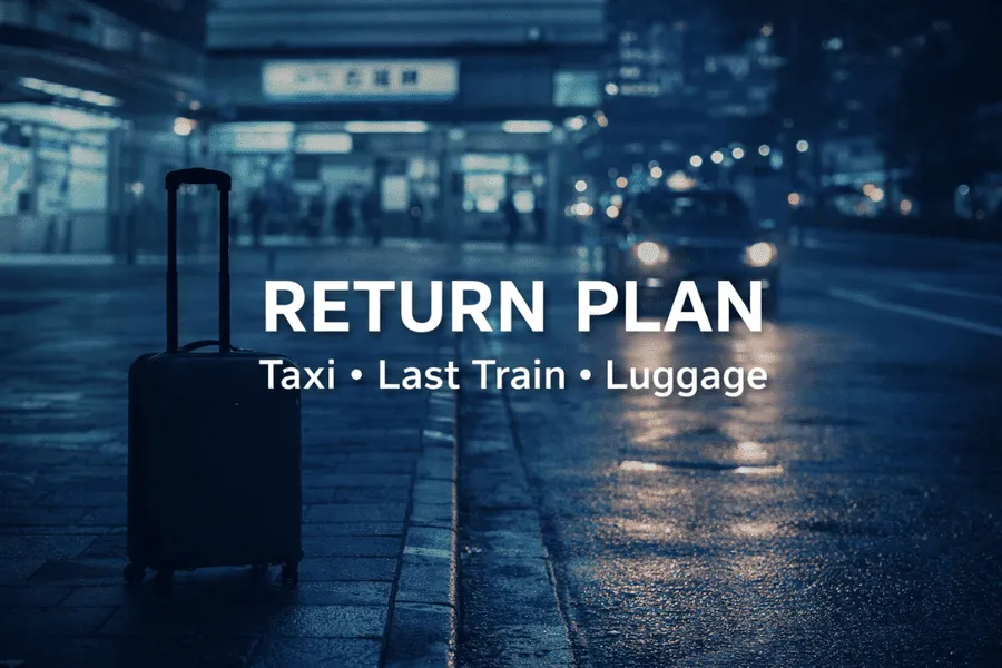 「終電に間に合うかな」という不安、遠征では毎回感じる人も多いと思います。でもこれ、事前に一度だけ計算しておけばほぼ消えます。当日の自分は信用しないほうがいい。特典会が楽しくて時間を忘れたり、疲れてぼーっとしていたりするので、「何時に出れば間に合うか」は前日に決めておくのが正解です。