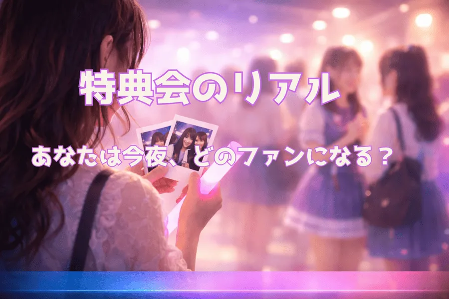 このページでは、特典会の「表から見えない空気感」をリアルに言語化します。あなたが「初めて」だとしても、「もう何十回も来ている」としても、どこかに「わかる」ポイントがあるはずです。